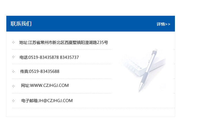 地址:常州市新北區友邦商務大廈1幢16、17層  電話:0519-85101652  傳真:0519-85112595  郵編:213022  網址:www.cz-jiayue_cn.bjbamc.com  郵箱:xiajifengaa@163.com